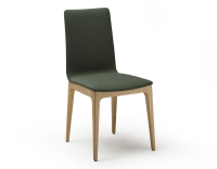 Chaise design bois teinte naturelle assise tissu vert forêt