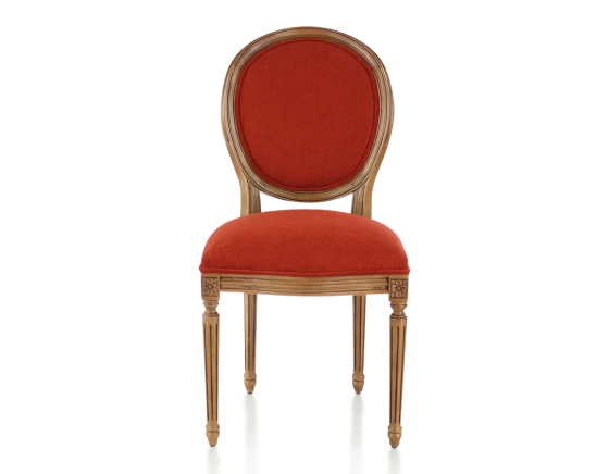 Chaise ancienne style Louis XVI bois teinte ancienne dossier canné assise tissu velours terracotta