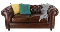 Canapé Chesterfield cuir 2 places marron soutenu accoudoirs cloutés