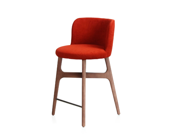 Tabouret de bar h80 cm bois teinte marron foncée assise tissu orange brûlé