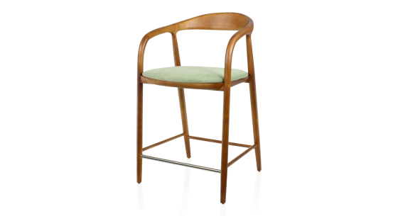 Bar stool h80 cm cherry tint green fabric seat cherry wood stain and green fabric