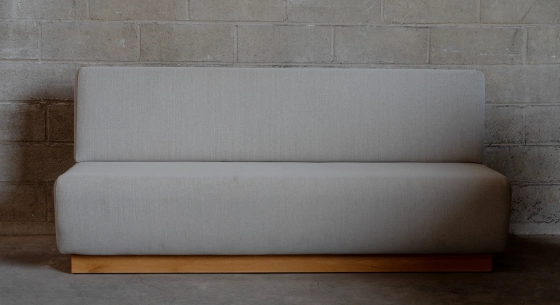 Antique 3 seater sofa socle en chêne naturelle assise tissu beige naturel